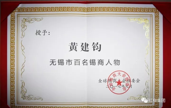 (另訊)紅柳集團(tuán)黃建鈞董事長入選“無錫市百名錫商人物”