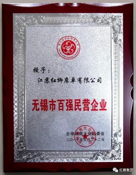 近日,按照全國工商聯(lián)上規(guī)模民營企業(yè)調(diào)研、發(fā)布“中國民營企業(yè)500強(qiáng)”的經(jīng)驗(yàn)做法,“無錫市100強(qiáng)民營企業(yè)”榜單在第三屆全球錫商大會(huì)召開之際重磅推出。本次“無錫市100強(qiáng)民營企業(yè)”榜單入圍企業(yè)的營業(yè)收入在10.29億元以上,稅收在1500萬元以上。其中包括15家“2017全國民營企業(yè)500強(qiáng)”無錫上榜企業(yè)、18家“2017江蘇省民營企業(yè)100強(qiáng)”無錫上榜企業(yè)。紅柳集團(tuán)入圍此次榜單。