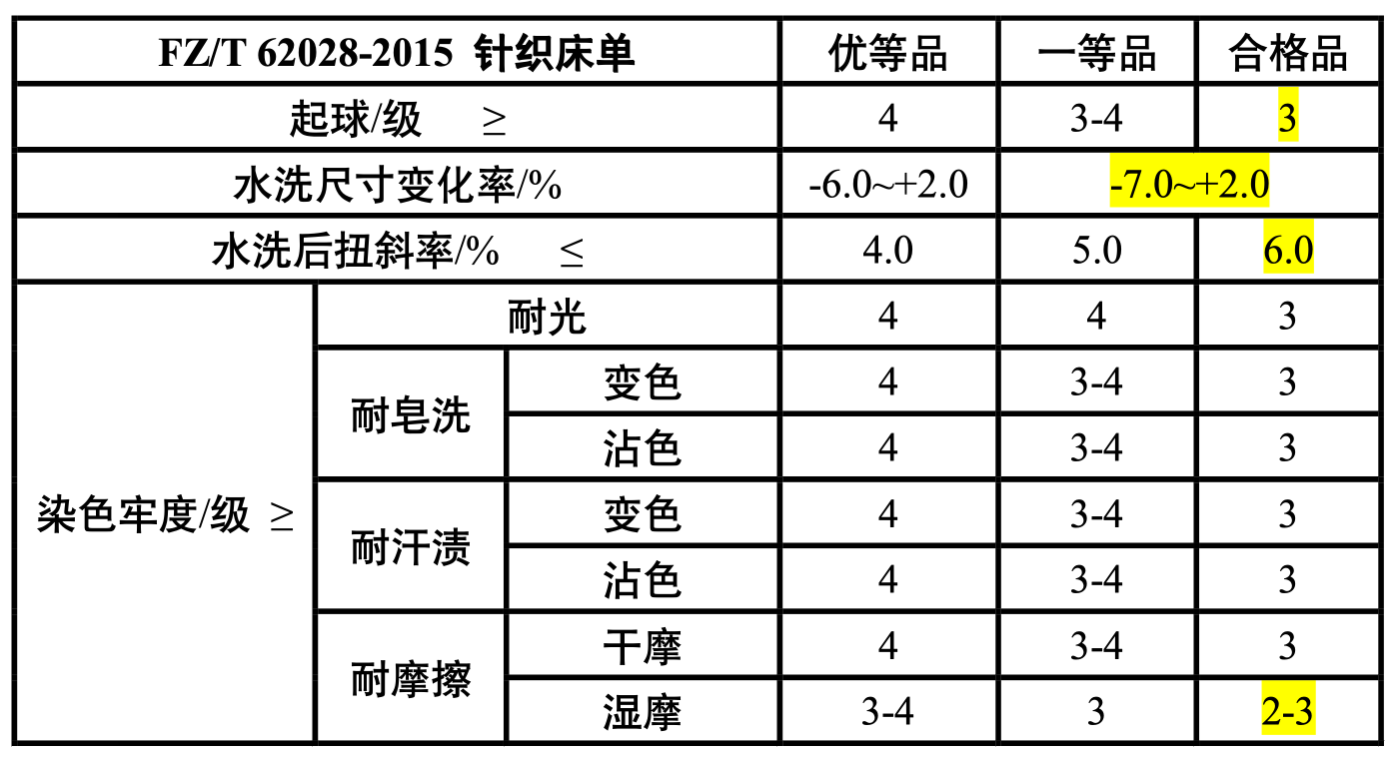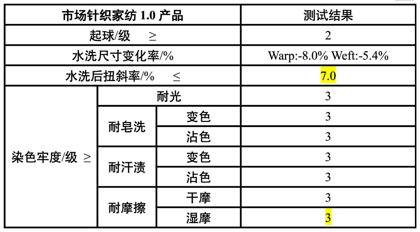 從上表可以看出,市場(chǎng)上現(xiàn)有針織家紡產(chǎn)品的抗起毛起球性能,以及水洗尺寸變化率、水洗后扭斜率,均低于FZ/T 62028-2015《針織床單》要求的合格品標(biāo)準(zhǔn),染色牢度也只是僅僅滿足合格品標(biāo)準(zhǔn)。