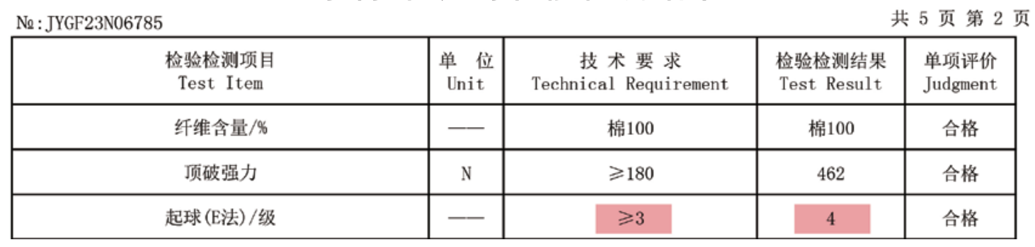 奈特綿®起球性能檢測(cè)結(jié)果