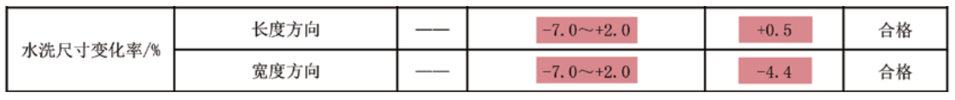 奈特綿®水洗尺寸變化率檢測(cè)結(jié)果