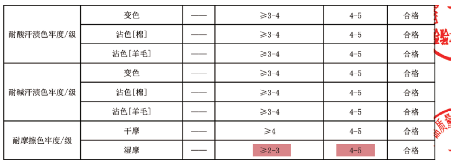 奈特綿®色牢度檢測(cè)結(jié)果