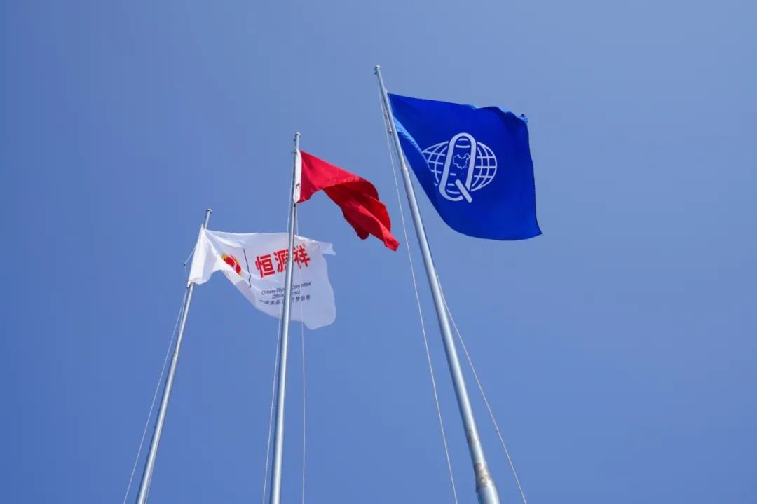 開幕式上,國旗、質(zhì)量旗及恒源祥司旗伴隨著雄壯的國歌冉冉升起。