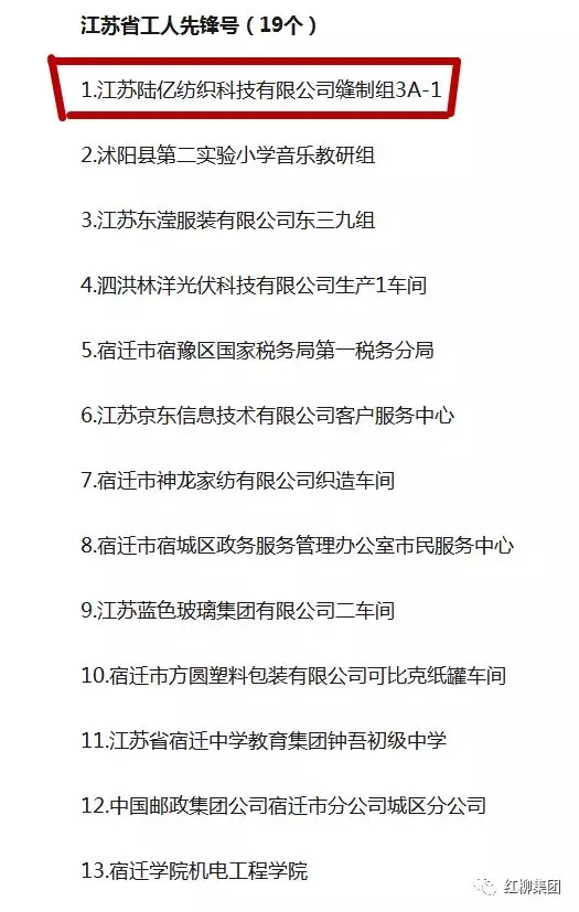 近日,宿遷市總工會發(fā)布了宿遷市省五一勞動獎狀、獎?wù)?、榮譽獎?wù)潞褪」と讼蠕h號(集體)推薦人選公示的名單。紅柳集團陸億紡織縫制3A-1組入圍2018年度江蘇省“工人先鋒號”推薦名單。